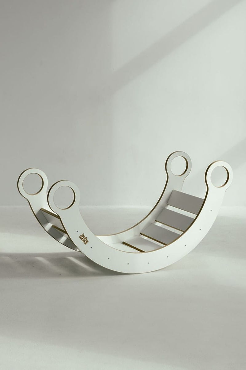 Banaby.hu » Montessori / Montessori hinták / Fa Montessori fa hintaszék csúszdával/mászófallal L - fehér
