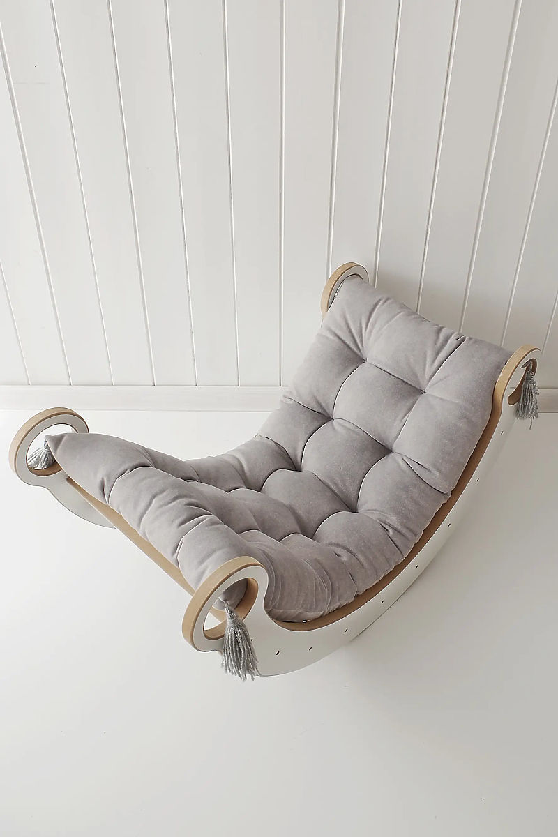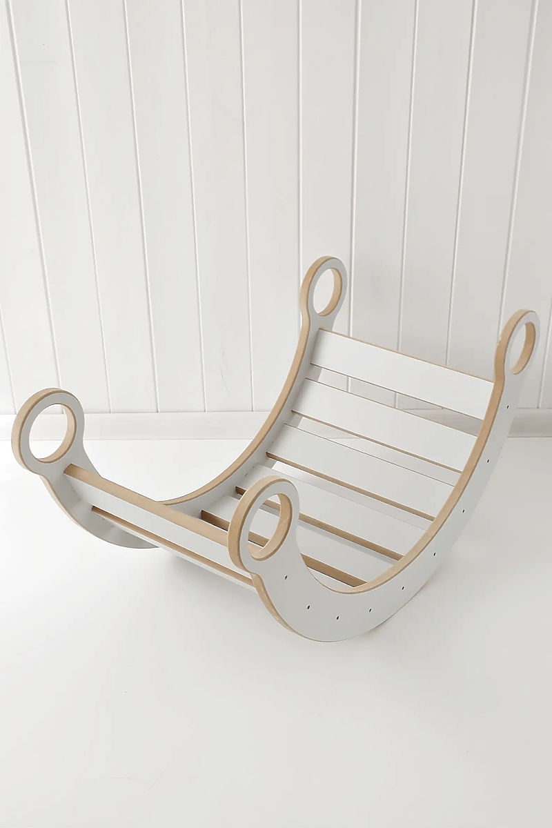 Stílusos Montessori S fa hintaszék fehér színben, amely tökéletesen illik minden gyerekszobába vagy játszószobába. Ez a multifunkcionális elem nemcsak szórakoztató hintázást biztosít, hanem kreatív játékra is lehetőséget ad – építési alapként, titkos rejtekhelyként vagy kis üzleti pultként is használható. Természetesen támogatja a motorikus képességek, az egyensúly és az erő fejlődését a gyerekeknél. A Montessori S hintaszék biztonságos és tartós a robusztus szerkezetének és a minőségi anyagok használatának köszönhetően. Egyszerű és időtálló dizájnja könnyen illeszkedik bármilyen belső térbe, órákon át tartó szórakozást nyújt a gyerekeknek, miközben hozzájárul fizikai és mentális fejlődésükhöz.