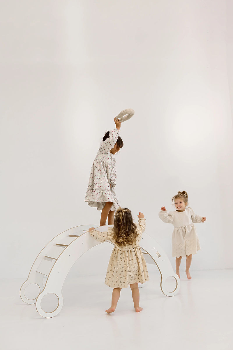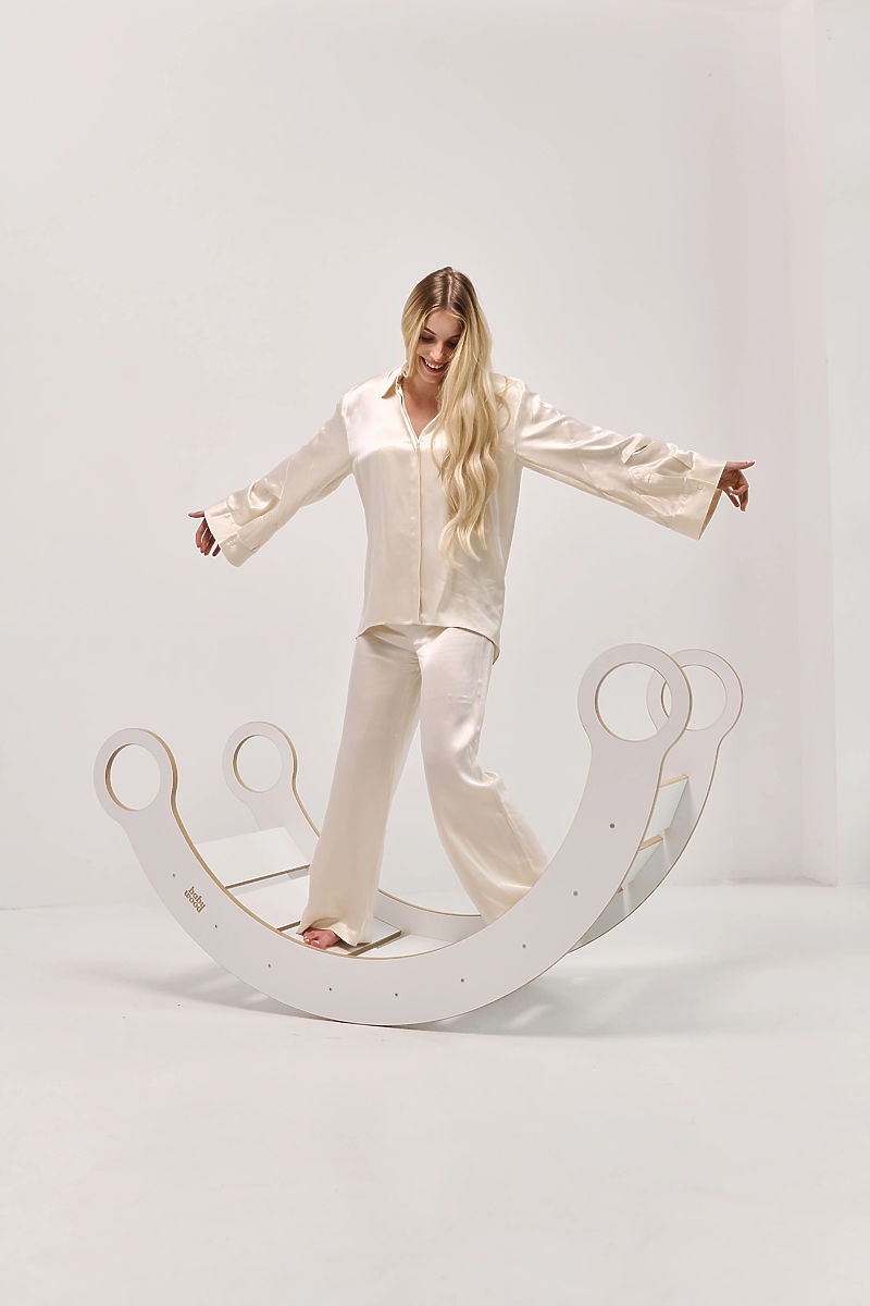 Stílusos Montessori XL fa hintaszék fehér színben, amely remekül illik gyerekszobákba vagy játszószobákba. Ez a multifunkcionális szett lehetővé teszi a biztonságos hintázást, de kreatív játékokra is alkalmas – szolgálhat titkos rejtekhelyként, kis pultként vagy építési térként. Természetesen támogatja a gyermekek erőnlétének, egyensúlyának és motorikus képességeinek fejlődését. A Montessori XL hintaszék erős és tartós a minőségi fának köszönhetően. Elegáns és időtálló dizájnja könnyen illeszkedik bármely belső térbe, és órákon át tartó szórakozást nyújt a gyermekeknek a fizikai és pszichomotoros képességek fejlesztése közben.