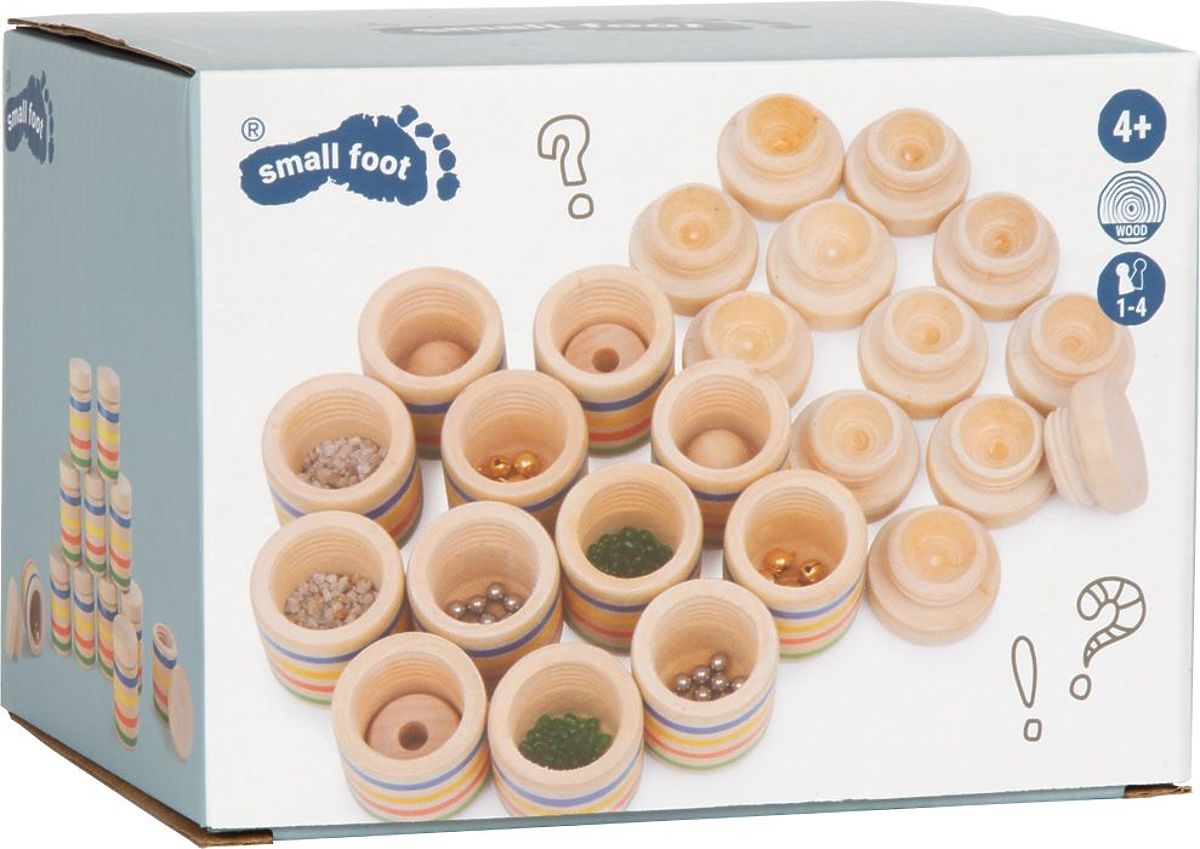 Hangalapú memóriajáték fából készült poharakkal. .. többet
