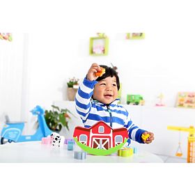 A termék fából készült és élénk színekre festett. Szórakozás és motoros gyakorlat egyben! Az egyes kockákat egy ingatag félgömbre helyezzük. Felborítani azonban nem szabad.
