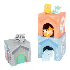 A hajtogatás jó móka! Öt kocka divatos pasztell színekben, melyeken állati illusztrációk is vannak. Csak arra várnak, hogy elkezdje egymásra rakni őket! A kockák közül négynek van egy ablaka és egy ajtója, amelyben az állatfigurák elbújhatnak. Az egyik oldalán található illusztrációnak köszönhetően a gyerekek megtanulják, hogyan kell helyesen elhelyezni a kockákat. A halmozás és válogatás segít a gyerekeknek fejleszteni a színek és formák megértését, valamint gyakorolni motoros készségeiket. Ki fogja a megfelelő sorrendbe tenni a kockákat? Minden illusztráció részletes és gyermekek számára alkalmas. Az összecsukható torony a "Pastel" termékcsalád része, és magas látható faanyag-arányával és modern, pasztell színű színezésével nyűgöz le. Főbb jellemzők: illusztrált, lágy pasztell színek, kompakt, tárolható kivitel