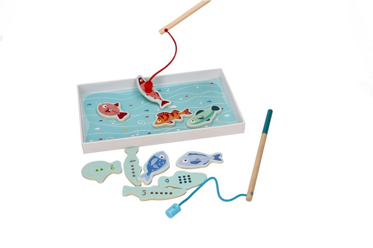 Dobd be a horgászbotokat és fogd ki mindet, majd a sikeres halászat után számold meg a pontokat. Mivel minden hal hátoldalán más számú pont és megfelelő szám található, a gyermek számolni is tanulhat. Minőség garantált, a játék a legnagyobb precizitással készült az Adam Toys márkától.