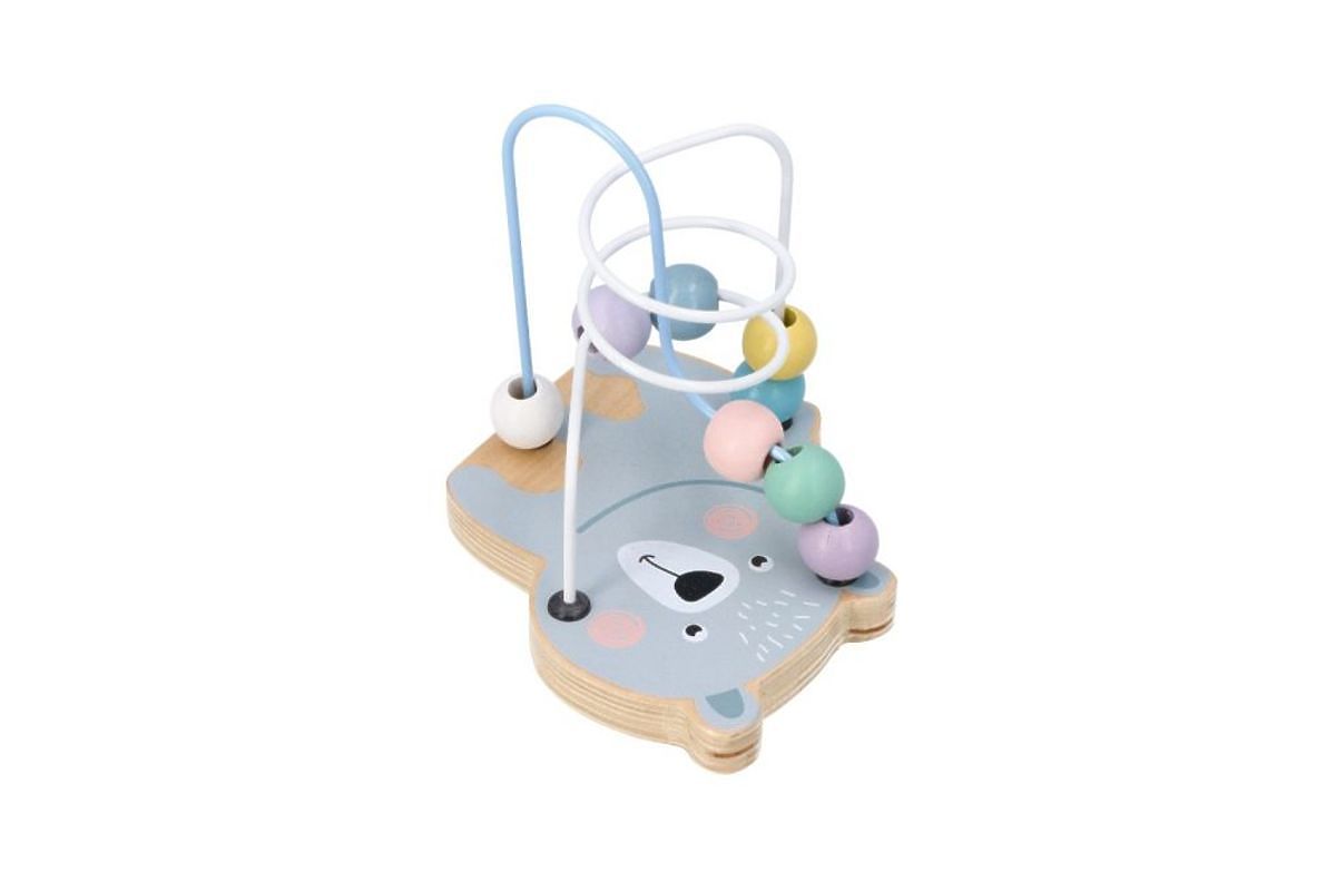 A játék egy Macit ábrázoló talapzatból áll, 2 fém huzalból, amelyek úgy vannak meghajlítva, hogy hurkokat képezzenek, és mindegyik huzalon 4 fa gyöngy található. Az egész egy esztétikus dobozba van csomagolva, ideális ajándéknak.