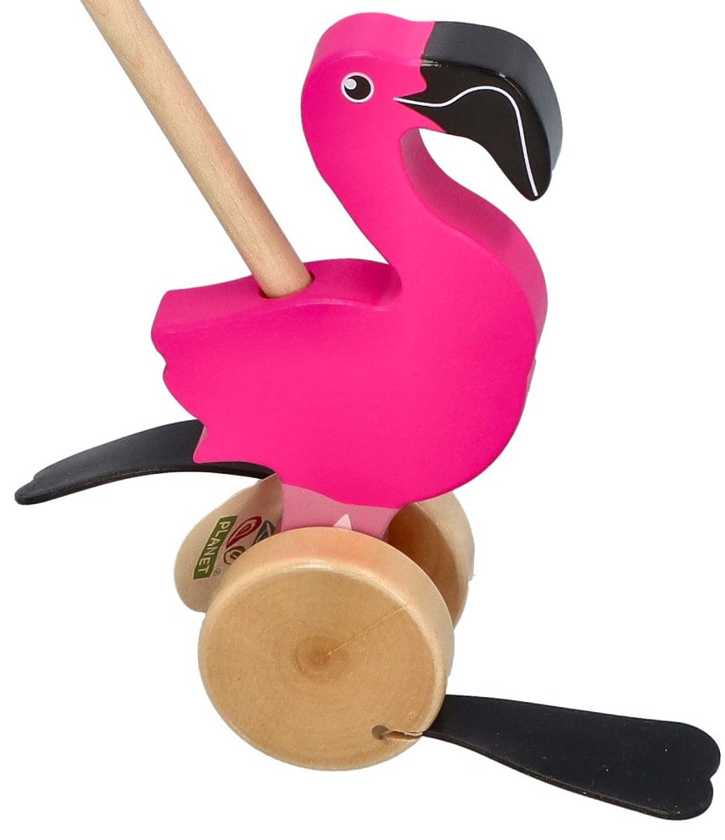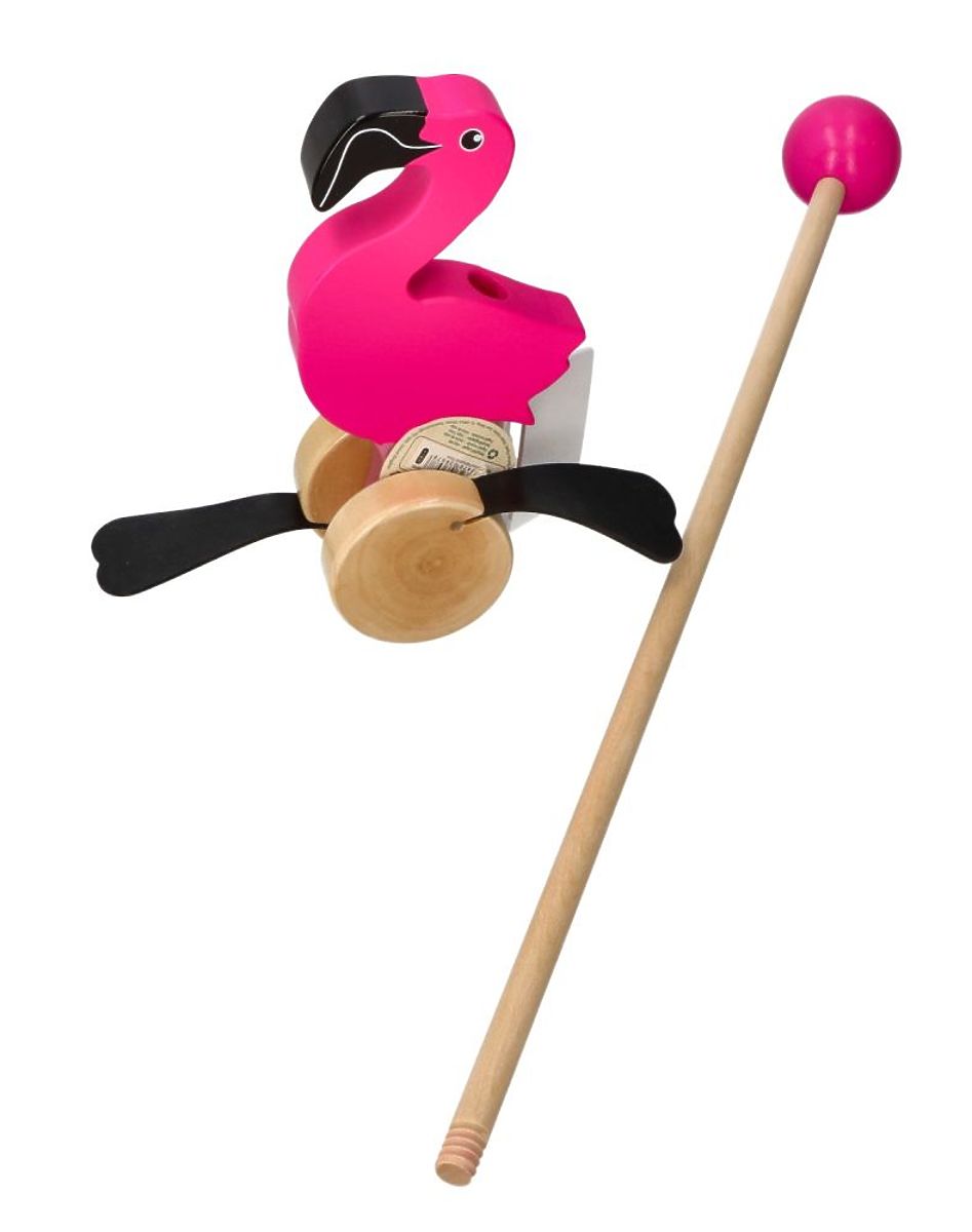 A flamingó teljesen fából készült, a kerekek elemei gumiból.
