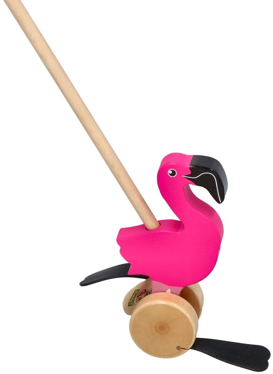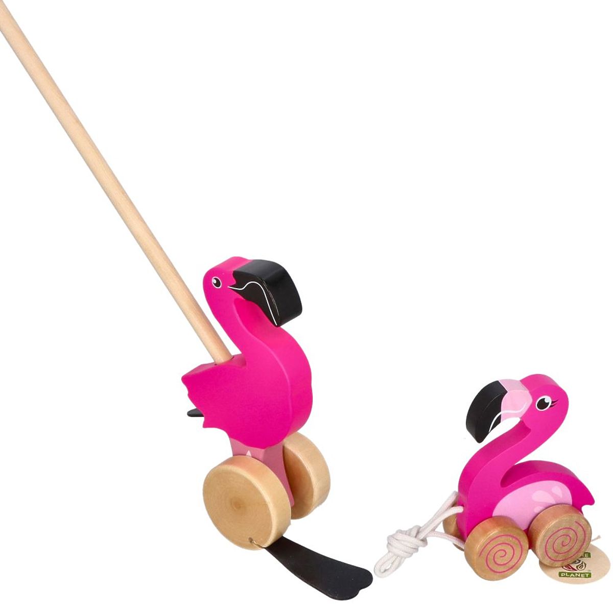 Bemutatjuk az ideális társaságot a közös sétákhoz. A bájos rózsaszín flamingó fából készült játék, amely ösztönzi a gyermeket a mozgásra és járásra. A gyermek megragadja a rudat és maga előtt tolja a madarat. A kerekek forgás közben gumi elemeket csapnak a földre. A rúd fogantyúval végződik, hogy kényelmes legyen a játék tolása. A rúd csavarozott.