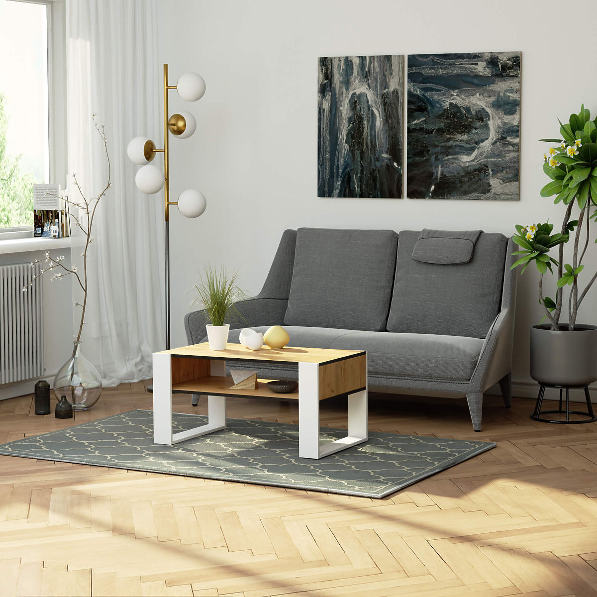 A Domi craft tölgy konferencia asztal fehér lábakkal ötvözi az esztétikus megjelenést a funkcionalitással és a sokoldalú használattal. A meleg fehér szín miatt az asztal remekül illik modern és hagyományos enteriőrbe egyaránt, vizuálisan növeli és világosítja a teret. A bútor kis méretei miatt az asztal kis szobákban is jól teljesít. Az asztal sokoldalú bútor, nemcsak kávé, tea vagy hideg italok fogyasztására, vendégek fogadására vagy mindennapi pihenésre használható. A funkcionális asztallap ideális laptopos munkához, míg a lent elhelyezett széles polc lehetővé teszi számítógépes kiegészítők és munkaanyagok tárolását. A Domi craft tölgy konferencia asztal fehér lábakkal kopásálló és vízálló laminált lapból készült, így az asztallap sikeresen tisztítható nedvesen is. Az asztal élei tartós ABS szegéllyel vannak befejezve, ami tovább növeli a bútor sérülésekkel szembeni ellenállását.