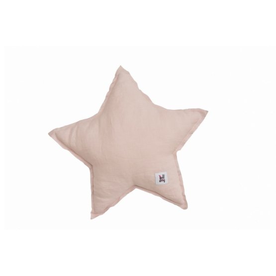 Egy szép, dekoratív párna, amely finom, rózsaszín színű, finom anyagból készült, biztosítja a gyermek kényelmes alvását.