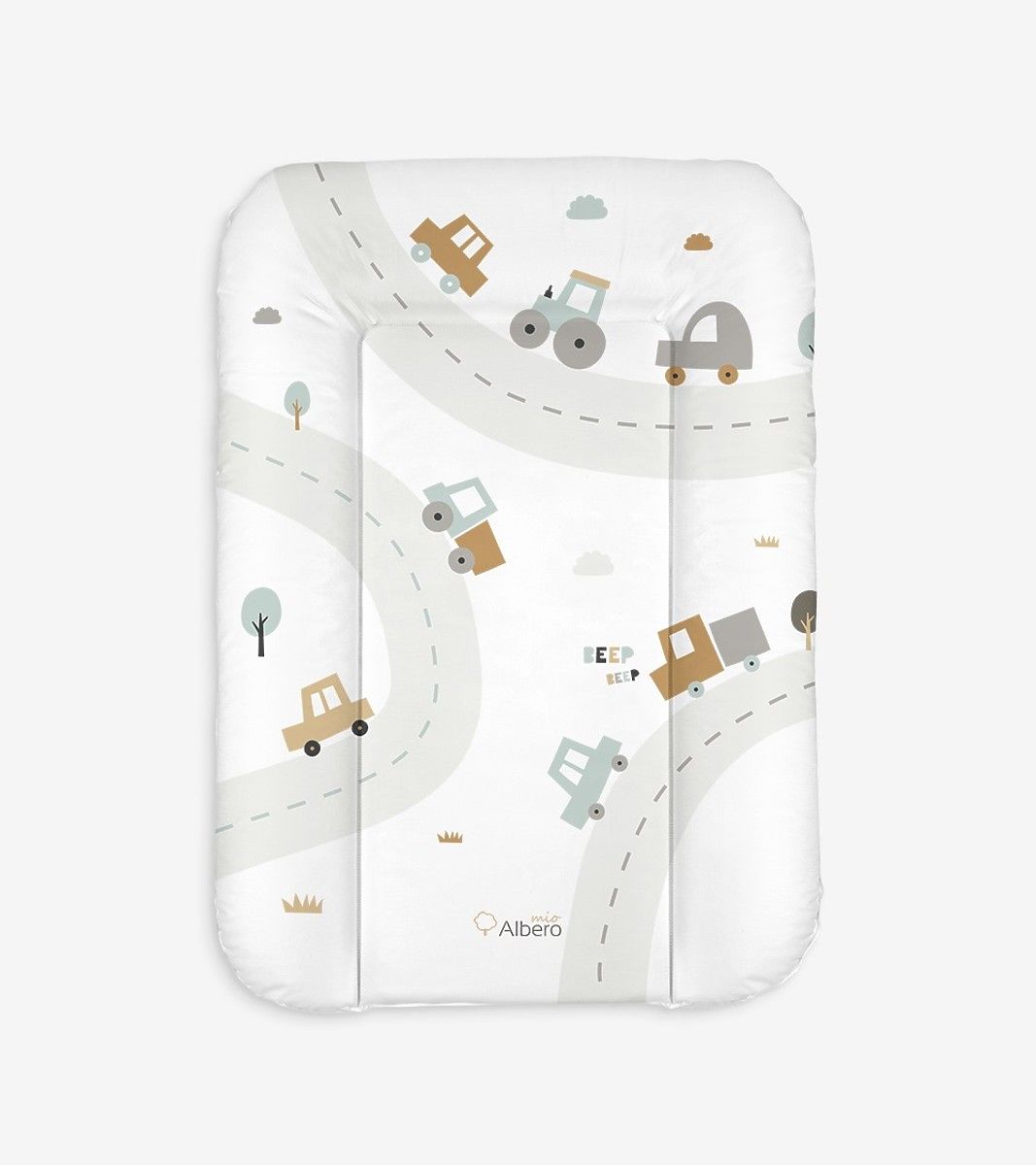 Váltóbetét gyönyörű játékautó motívummal. A szőnyeg nagyon praktikus, lapos, puha, speciális komódra, beépített pelenkázóasztalra vagy bármilyen más bútorra helyezhető, ahol van egy hely.