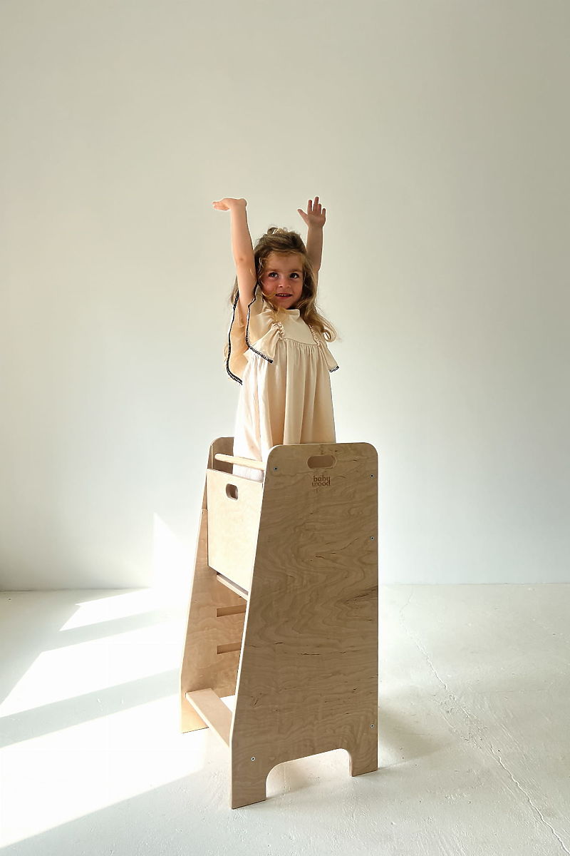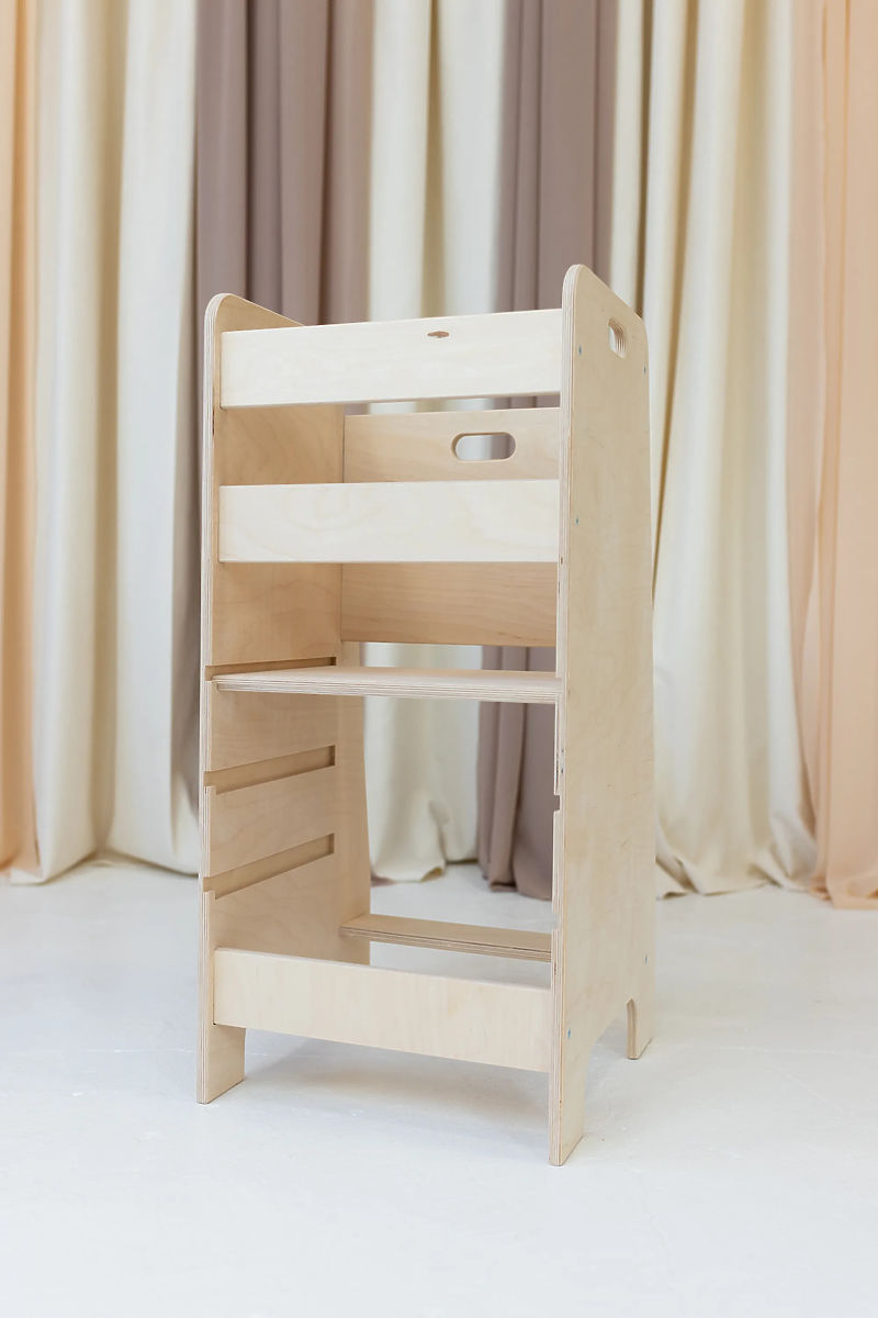A Kitchen Helper segítségével a gyermek biztonságosan állhat a megfelelő magasságban és új készségeket tanulhat – a gyümölcsök mosásától kezdve az egyszerű ételek elkészítéséig, felnőtt felügyelete mellett. Nem csupán egy lépcsőfok, hanem egy hely a közös pillanatok, tanulás és szórakozás számára.