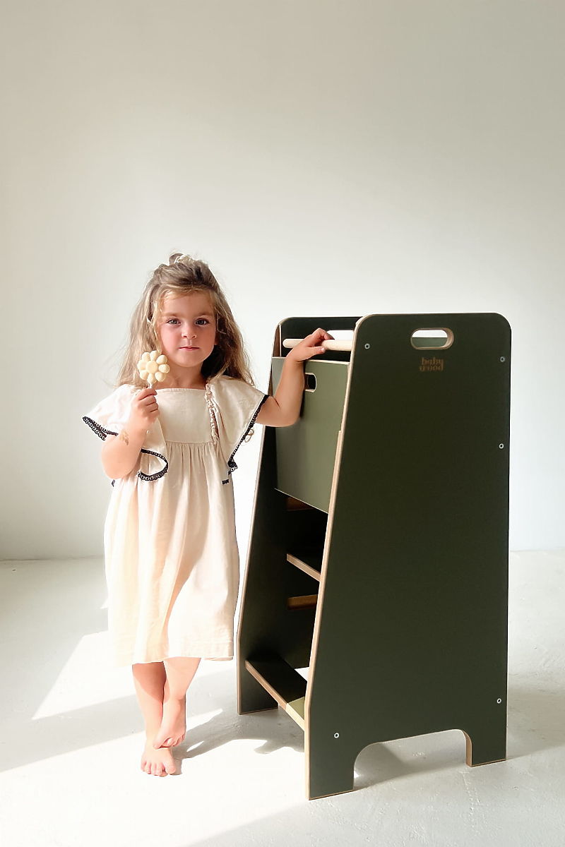 Zöld Comfort tanulótorony gyermekek számára konyhai segédeszközként. .. többet