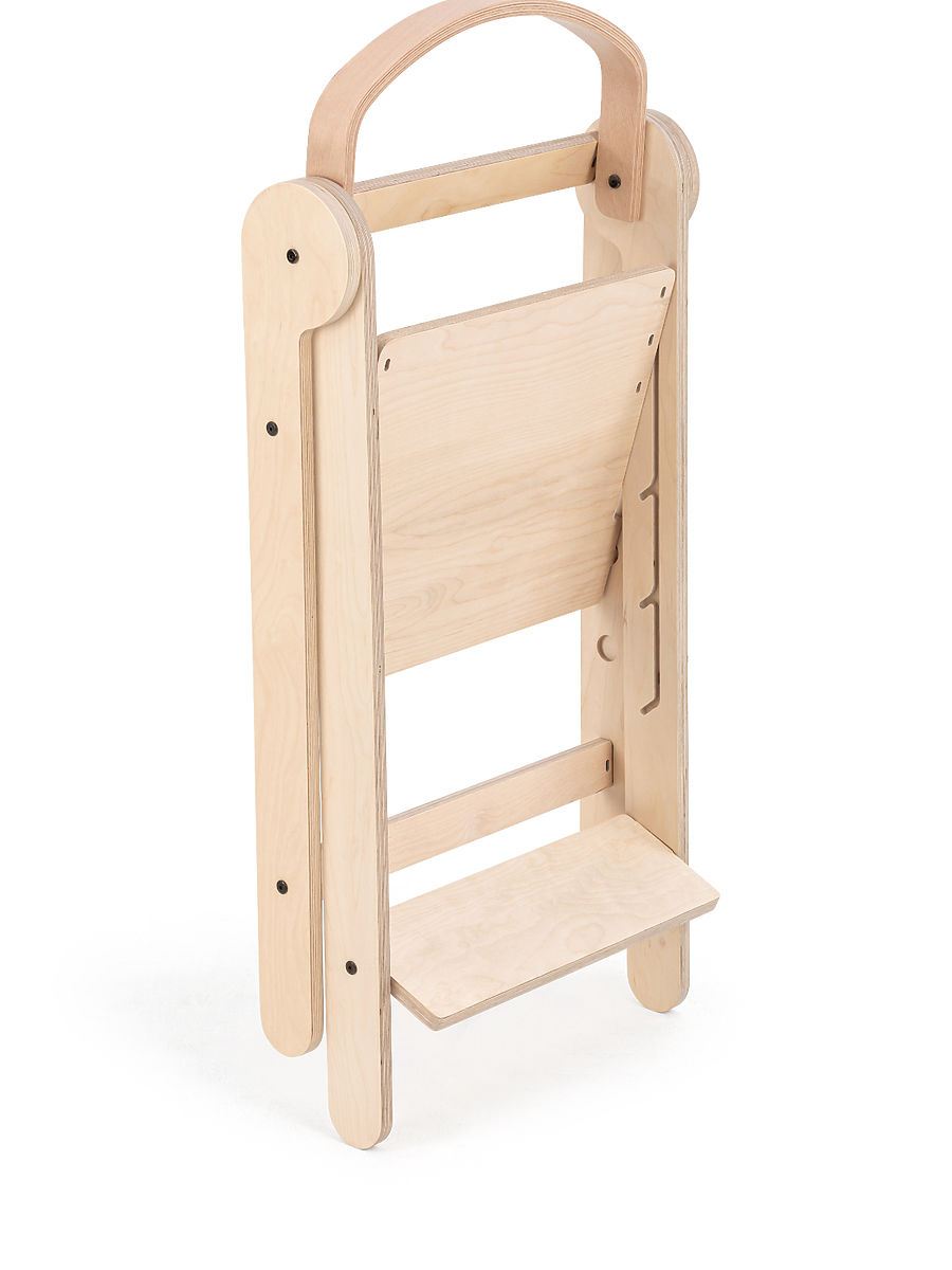 Összecsukható kialakításának köszönhetően nem csak a szűk helyekre ad helyet, amikor nincs használatban, hanem az egyik helyiségből a másikba való költözéskor is kényelmet biztosít. Adja meg gyermekeinek, hogy csatlakozzanak Önhöz a konyhában, a fürdőszobában vagy esetleg a műhelyben végzett érdekes tevékenységekben.