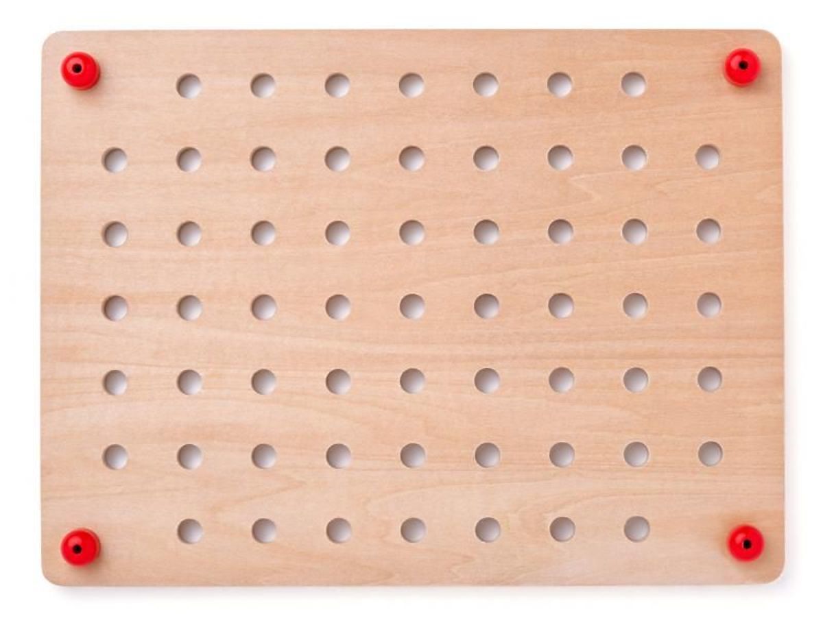 Válasszon egyet a színes sablonok közül, és rögzítse a fa alapra. Minden sablonon vannak lyukak a fogaskerekek számára. Ezután már csak a kiválasztott kereket kell elforgatni, és figyelni a kép mozgását.