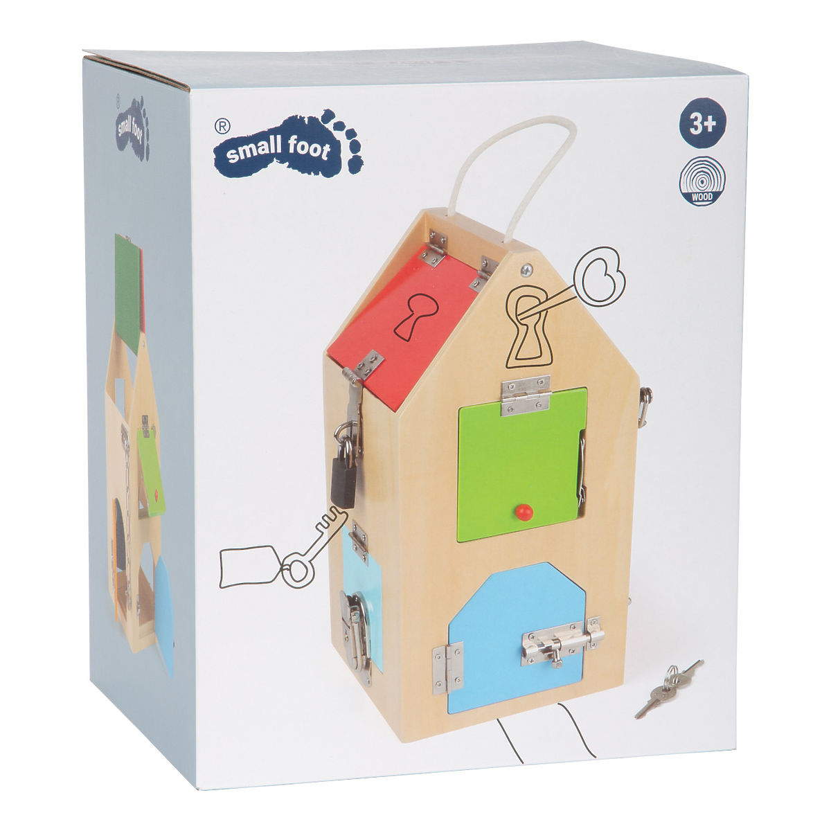 Ezen a minőségi kivitelezésű faházban nem találsz U-zárat és hengerzárat, különféle csavarokat, karokat, zsanérokat és biztonsági láncot, amelyek edzik a gyerekek motorikus képességeit. Ráadásul nagyon könnyen szállítható és "kulcsos" élményeket nyújt! Tartós fából és tömör fém alkatrészekből készült. Főbb jellemzői: fejleszti a gyerekek finommotorikáját, elősegíti a kíváncsiságot