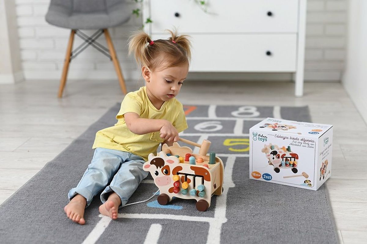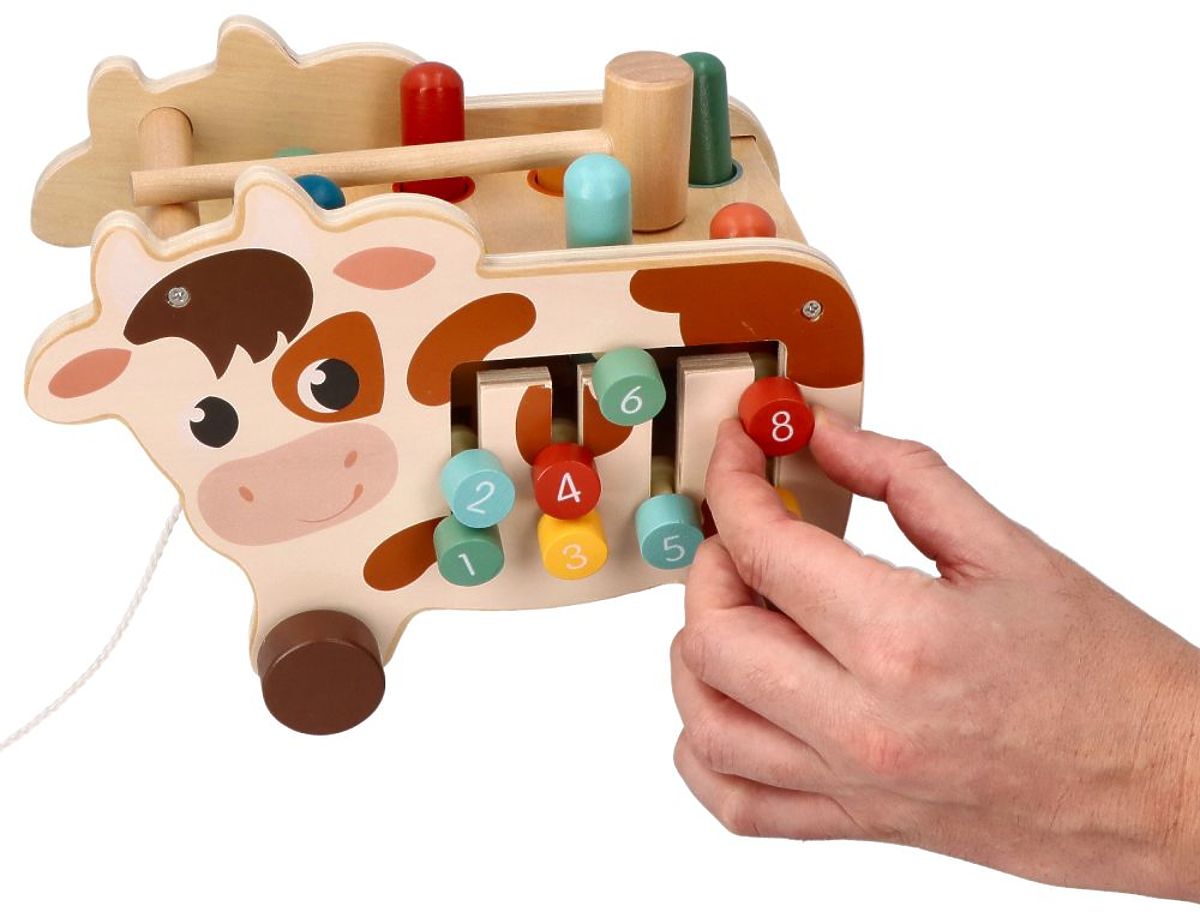Ez az aranyos és barátságos Krysia tehén biztosan első pillantásra elbűvöli minden gyermek szívét. A tehén formájú fa aktivitási központ zsinórral egy olyan játék, amely hosszú időre leköti a gyermeket. A játék öröme nem minden, mert a sok szórakozás közben számos fontos készséget is fejleszt.
