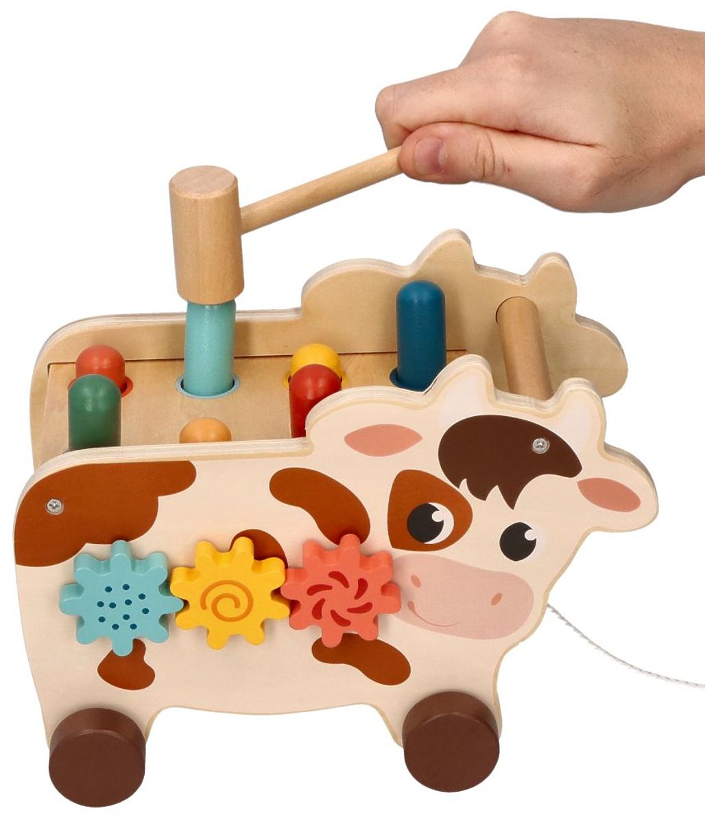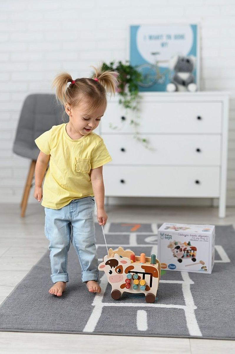 A tehénnel való játék révén a gyermek fejleszti természetes kíváncsiságát, megtanul kreatívan gondolkodni és fejleszti képzelőerejét. A játék gyönyörű színei és esztétikus kivitelezése jelentősen befolyásolják a gyermek érzékelését, hozzászoktatják az új árnyalatokhoz. Az édes tehén egy fa játék, amely nemcsak szórakoztat és tanít, hanem nagyon tetszik a gyermekeknek is.