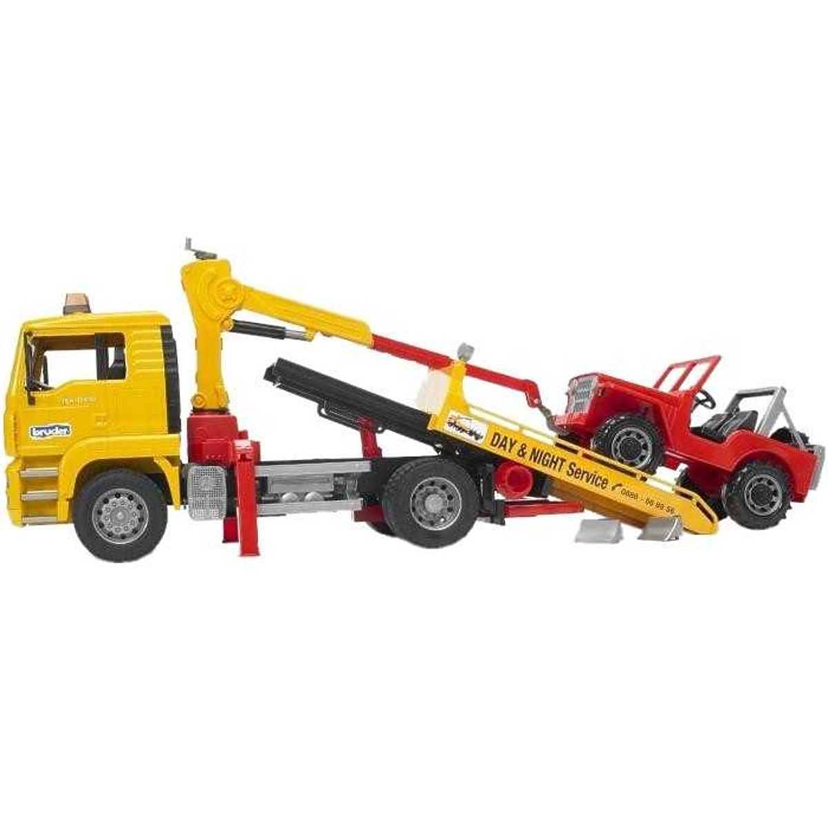 Bruder MAN teherautó vontató + Jeep. A vontatószolgálat + Jeep egy vontató teherautó, amely tartalmaz egy jeepet is. A MAN TGA vontató teherautó dönthető .. többet