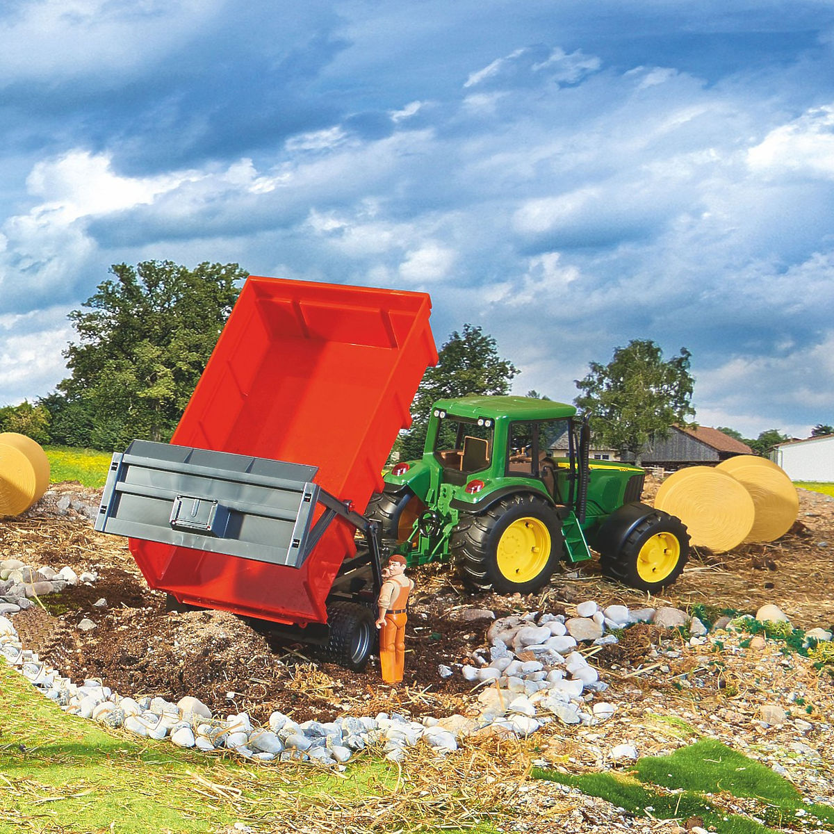 Platós pótkocsi automatikus hátsó fallal. Nagyon népszerű platós pótkocsi, amely minden BRUDER traktorhoz és géphez csatlakoztatható. A pótkocsi automatikus hátsó fallal rendelkezik - ha a vezérlés be van kapcsolva, a hátsó fal automatikusan kinyílik a pótkocsi billentésekor. Ha nincs, a pótkocsi zárva marad. A gumiabroncsok szépen profiláltak, és nyomot hagynak, mint egy igazi platós pótkocsi. Szerezze be Massey Ferguson, Case vagy Steyr traktorához a Bruder 02211 piros platós pótkocsit azonos színösszeállításban. Németországban készült, kiváló minőségű anyagokból. Főbb jellemzők: kompatibilis a Bruder traktorokkal és gépekkel, automatikus hátsó fal, profilált gumiabroncsok, Németországban készült.