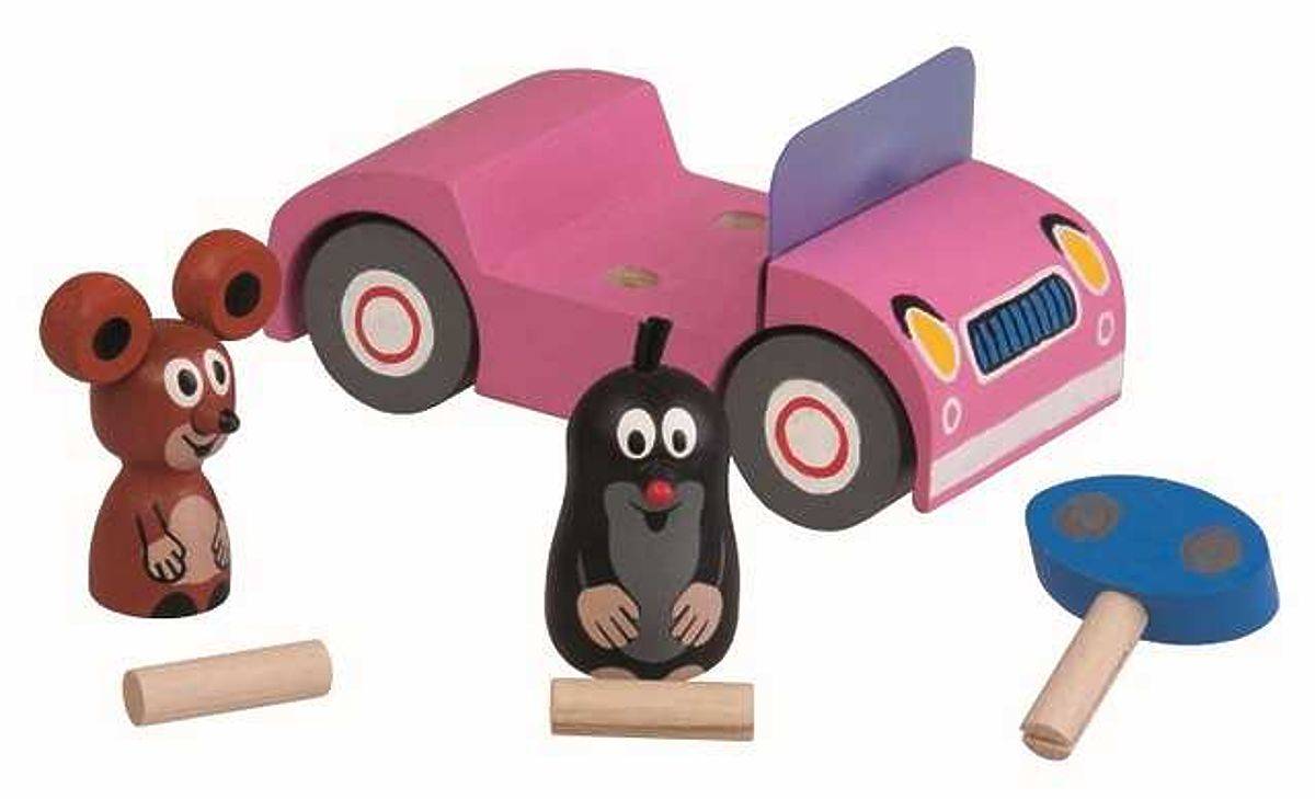 A Kisvakond és barátja, Egérke rózsaszín autóban kirándulnak. A figurák és a kulcs szabadon kivehetők és cserélhetők. Főbb jellemzők: a termék megfelel az EU játékbiztonsági követelményeinek, 3 éves kortól ajánlott © Zdeněk Miler