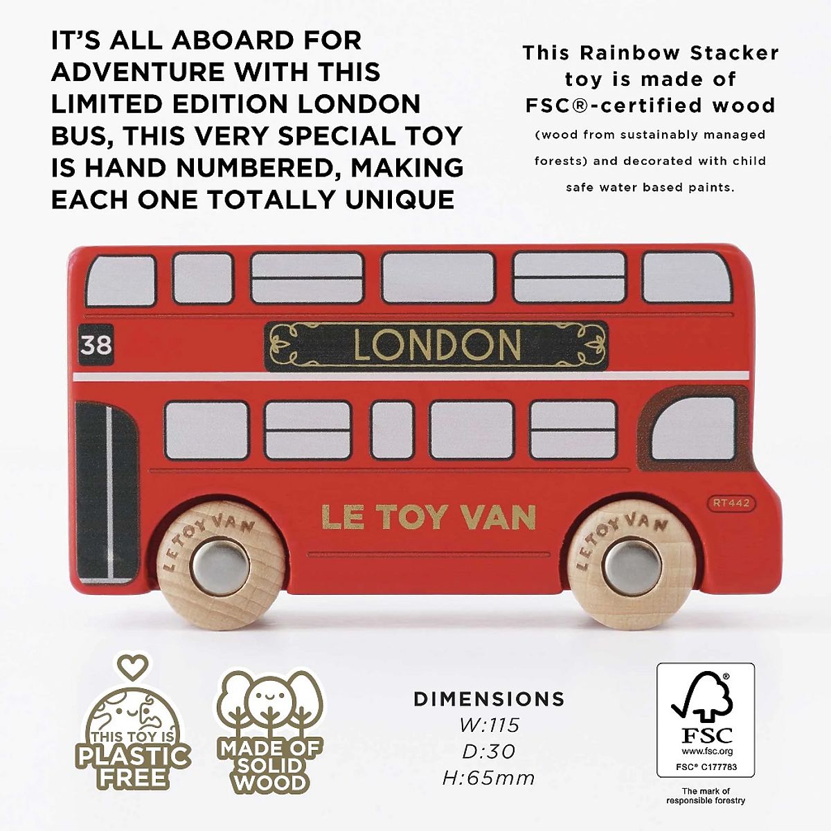 Indulj kalandra a londoni busz limitált kiadásával! Ez a tartós fából készült játék az Egyesült Királyságban készült és kézzel számozott - minden darab teljesen egyedi! Hagyományos piros színben, elegáns arany részletekkel és masszív kerekekkel van lakkozva, és kompatibilis a Le Toy Van sorozat összes garázsával és vasúti pályájával. Az FSC® tanúsítvánnyal rendelkező fából készült busz (fenntartható módon kezelt erdőkből származó fa) gyermekbarát vízbázisú festékekkel van díszítve. Játékok céllalA Le Toy Van összes játéka tartós használatra készült. Szeretettel tervezték tapasztalt kézművesek etikus gyakorlatok és fenntartható anyagok felhasználásával, amelyek kíméletesebbek bolygónkhoz. Fő jellemzők: etikusan készült FSC fenntartható fából, nem mérgező vízbázisú festékekkel festve, a legszigorúbb szabványok szerint tesztelve, kézzel számozott buszok limitált kiadása (világszerte csak 1000 db), klasszikus vintage piros design, az Egyesült Királyságban készült. Autók & építkezések: A Le Toy Van építési és motoros kollekciója, amely számos díjat nyert. Eddig több mint 15 díjat nyert képzeletgazdag autókért és építőjátékokért. Támogatják a gyermekek fantáziáját, ideálisak képzeletbeli játékhoz, fejlesztik a kreativitást és játékosan javítják a gyermekek kéz-szem koordinációját. Az FSC® (Forest Stewardship Council) márka és tanúsítvány garantálja, hogy a termékhez használt fa nem illegálisan lett kitermelve, és fenntartható vagy természetközeli módon kezelt erdőkből származik, ahol szigorú környezeti és szociális követelmények érvényesülnek. Az FSC® jelölés a terméken azt jelenti, hogy vásárlásával segít megvédeni az erdőket, és támogatja a fenntartható, felelős vagy természetközeli gazdálkodást, amelynek köszönhetően erdeink stabilabbak, egészségesebbek, természetes fajösszetételűek, és jobban ellenállnak a klímaváltozás negatív következményeinek.