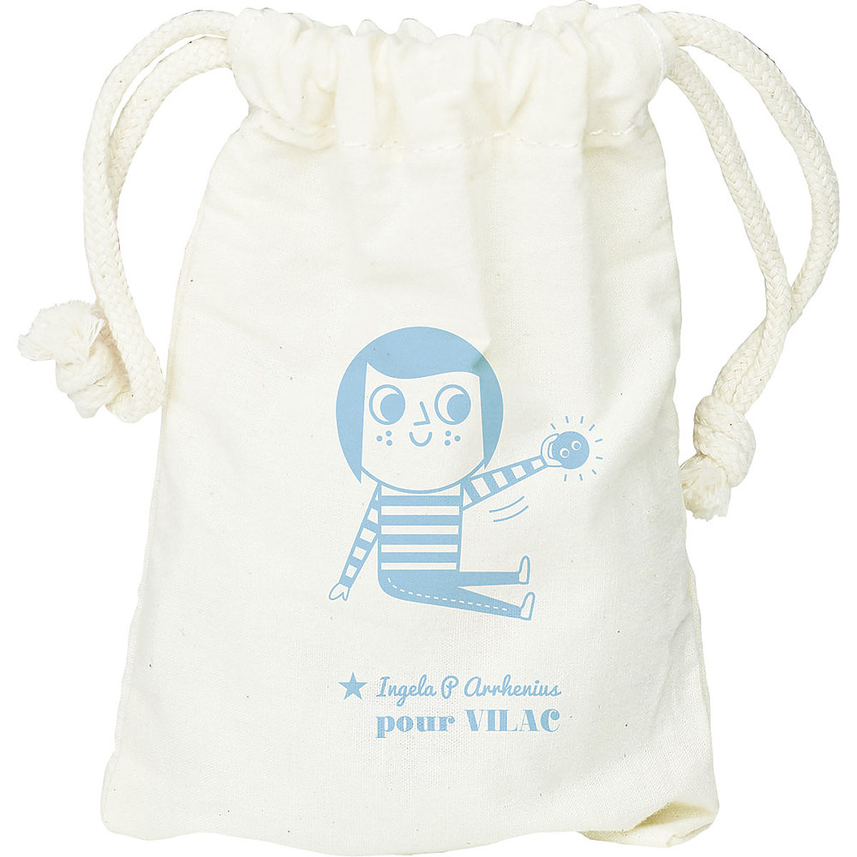 Szép mackó, mint csörgő – rumba golyó. Illusztráció: Ingela P. Arrhenius. Fából és nemezből készült Franciaországban. Átmérője 8 cm. Fő jellemzők: Franciaországban készült, Ingela P. Arrhenius design. Ingela Peterson Arrhenius svéd művész 1967-ben született. A művészet és a design mindig is fontos szerepet játszott az életében, és mielőtt illusztrátorként kezdte karrierjét, Ingela művészeti vezetőként dolgozott Stockholmban. Később reklám- és grafikai designt tanult egy művészeti iskolában szintén Stockholmban. 1992-ben kezdett szabadúszó illusztrátorként dolgozni, és nemzetközileg is tevékenykedett a reklám, design, kiadás területén... Korábban nyomtatott mintákat készített szövetekhez, tapétákhoz, papírárukhoz, valamint csomagolásokon, termékdesignon, lakberendezési kiegészítőkön és játékokon dolgozott. Poszterei és design játékai világszerte megtalálhatók. Szenvedélye a retro stílus, ami egyértelműen látható a munkáiban, valamint a tipográfia és a színek iránti lelkesedésében. Jelenleg Stockholmban él férjével és két fiával.